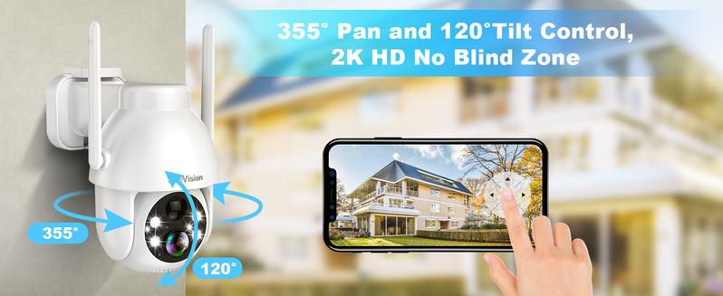 - 【3MP 2K HD Color Night Vision, 360° Pan and Tilt Control】Outdoor security cameras with (2048 x 1536) resolution,ultra clear and smooth video quality.Home security camera built-in infrared sensor lights switch to night vision mode automatically.Two white lights bring a full-color night view.This cameras for home security support 355°horizontal and 120°vertical rotation,with more areas that can be covered. Protect your home in all-around.(*Only support 2.4GHz WiFi,you can share with multiple users)
