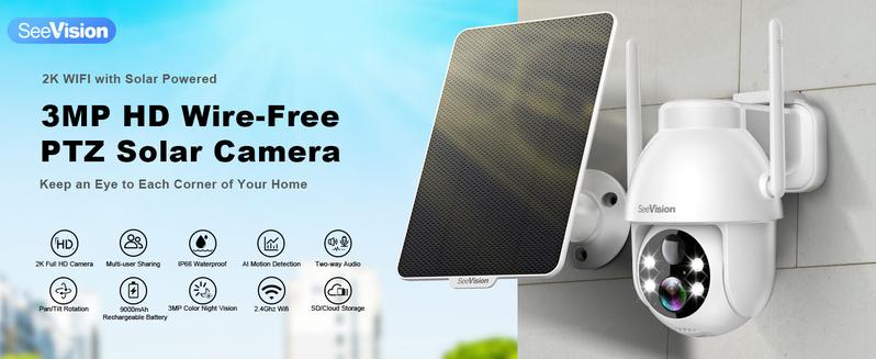 SeeVision White Solar-Powered Waterproof Wireless Security Camera with PIR Motion Detection, 2K HD Color Night Vision, and Two-Way Talk