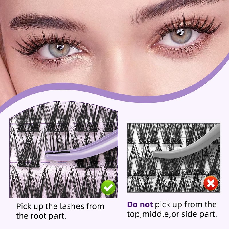 - How to Use: Gently roll the lash band with tweezers; Place adhesive precisely on the lash band;Place lash clusters just under your natural lashes; Use a lash seal brush to lock them in place