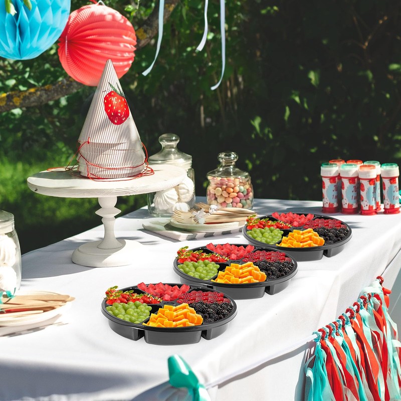 - Safe and Durable: these round 6 sectional food trays are made of quality PET plastic material, these fruit platters and trays are stable in structure, not easy to break or deform, serviceable and reliable to use them repeatedly
