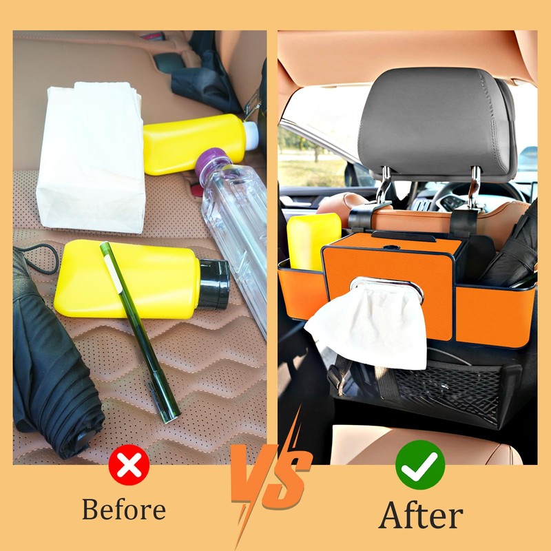 - Multifunctional Car Organizer: This back seat organizer features built-in cup holders, a tissue box holder, and storage hooks, providing a practical solution for keeping all your essentials organized and easily accessible while on the road.