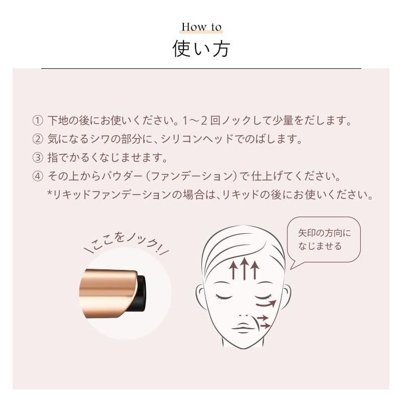 - How to Use: Press the knock button twice to release the concealer. Place a spatula on the areas you are concerned about and use your fingers to gently blend it. If you are using liquid foundation after liquid foundation, or when using powder foundation, use it before powder foundation. Can also be used over makeup. When using for the first time, press the knock button on the top about 10-20 times. Please wipe the nib clean with a tissue