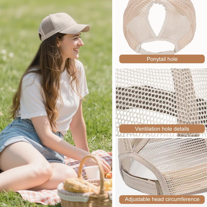 SEFIRST Baseball Cap Women's Baseball Cap with Mesh Ponytail Cap with Hole for Braid Baseball Cap Summer Cap Sports Cap Adjustable Sun Protection Sports Hat Breathable (Khaki), khaki, Unit size