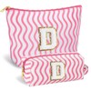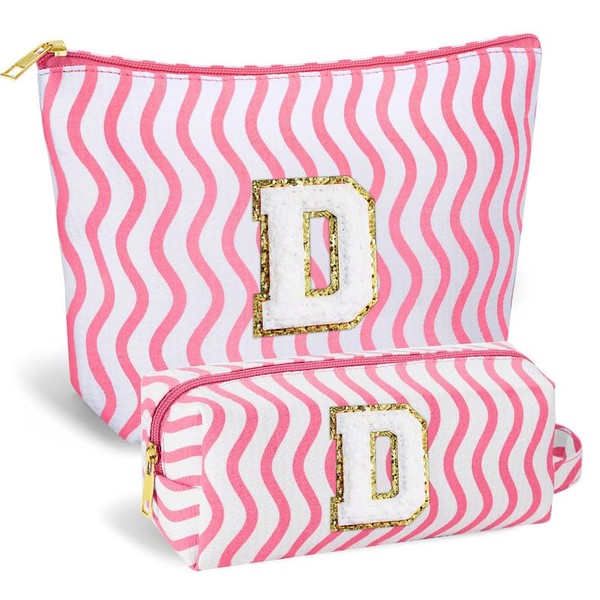SEFORICO Initial Makeup Bag- Cosmetic Bag Cute Teen Girl Gifts Make Up Case Large Capacity Makeup Bag Travel Bag Gift for Women Valentines Day Bridesmaid Friend Birthday Gifts(Pink D)