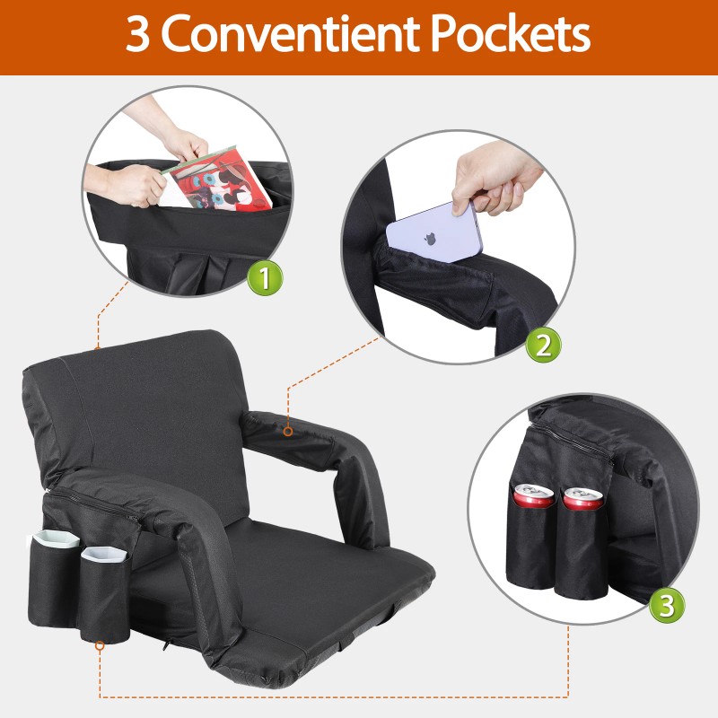 • 6 Adjustable Seat Back Positions: It has 6 reclining positions, ranging from upright to lying flat. Adjust the bleacher seat angle to find the perfect position for your comfort and viewing pleasure.