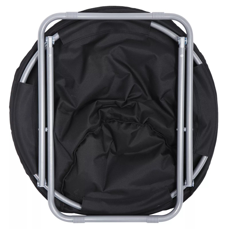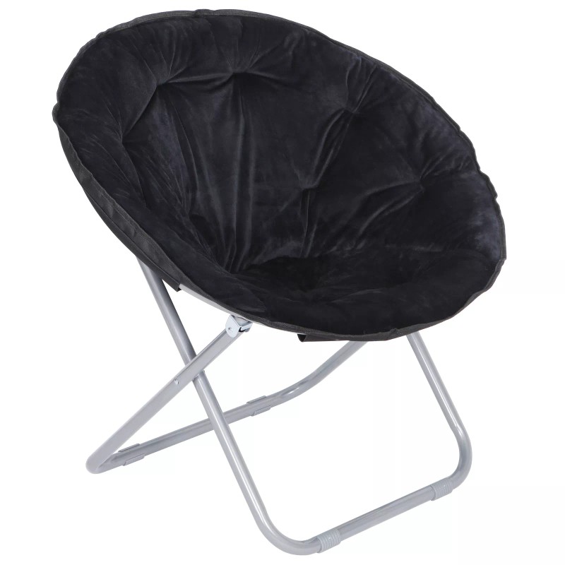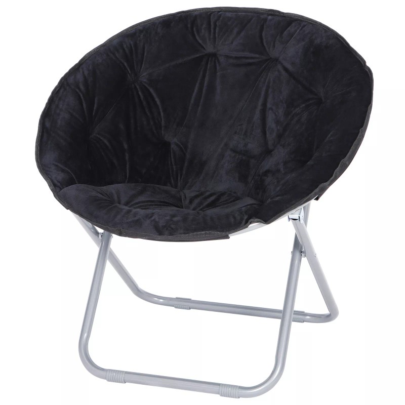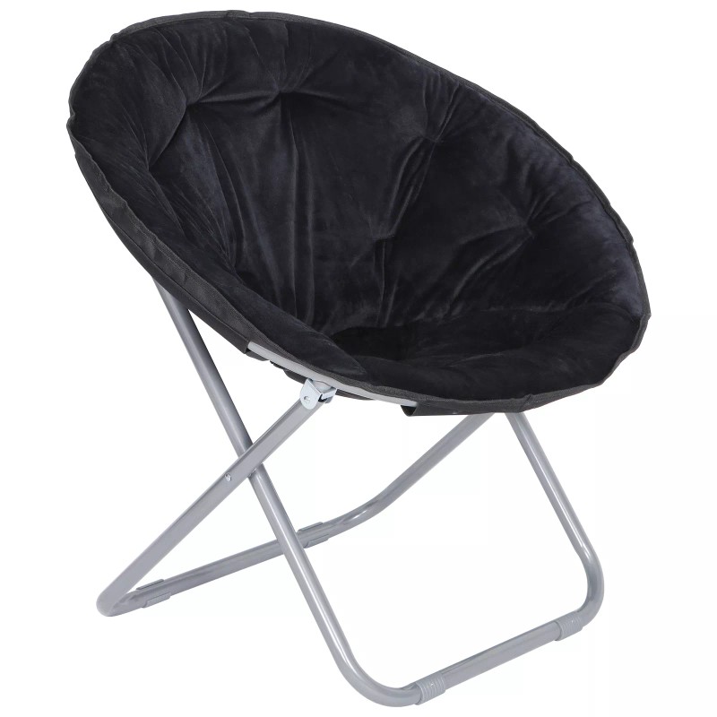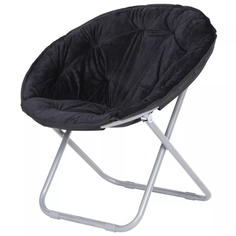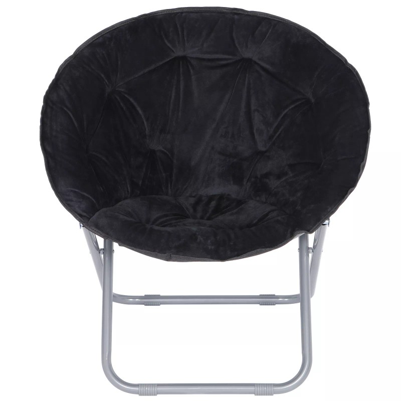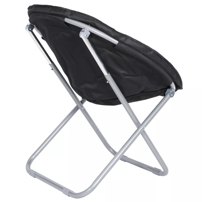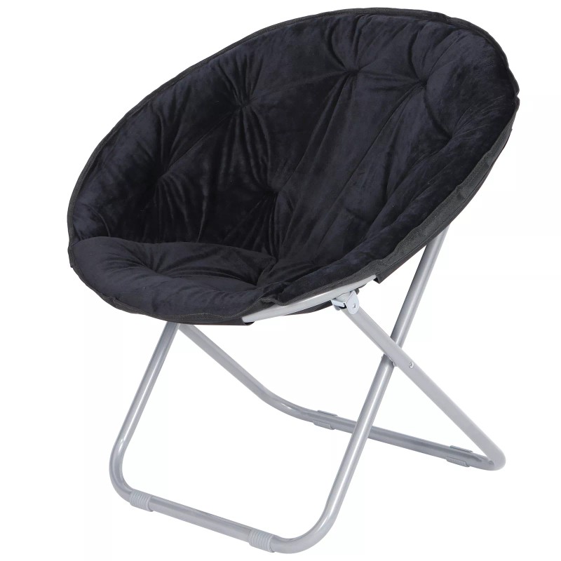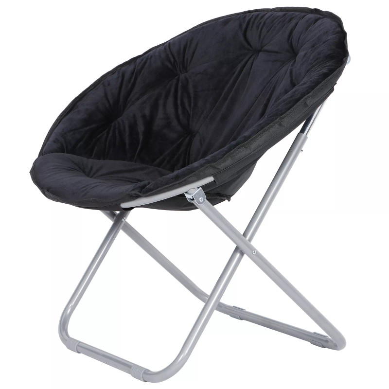 A foldable steel frame supports up to 242 lbs and folds flat when not in use, making it easy to hide this saucer chair out of sight without taking up a significant amount of room in tight spaces.