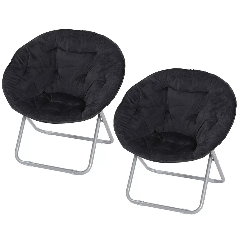 SEGAWE 2x Faux Fur Saucer Chairs Stool Soft Folding Moon Chairs For Living Room Sofa