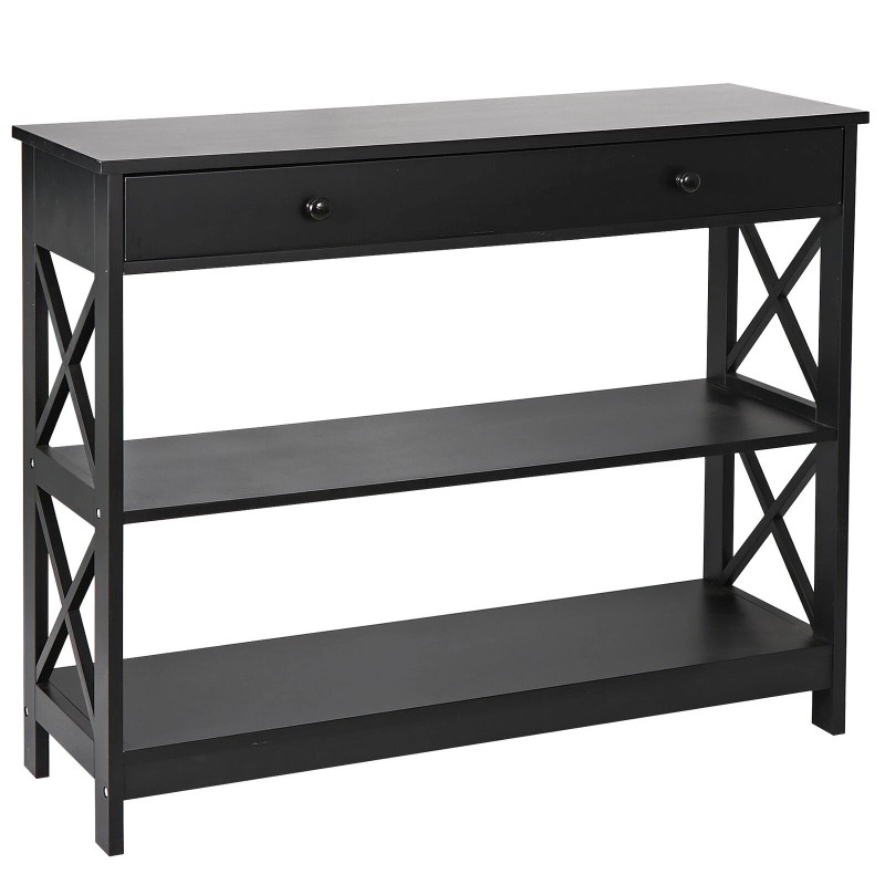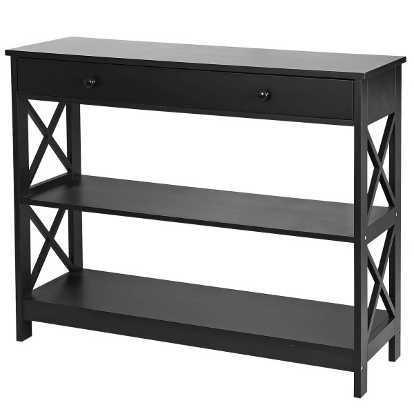 Segawe 3-Tier Console Table with Drawer and Open Storage Shelf Hallway Furniture Black