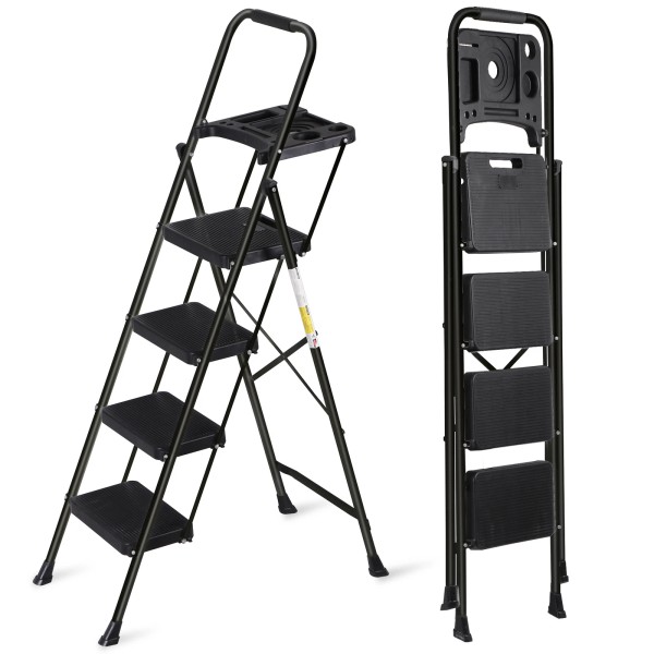 SEGAWE 4 Step Ladder Folding Step Stool with Wide Anti-Slip Pedal Handgrip Black