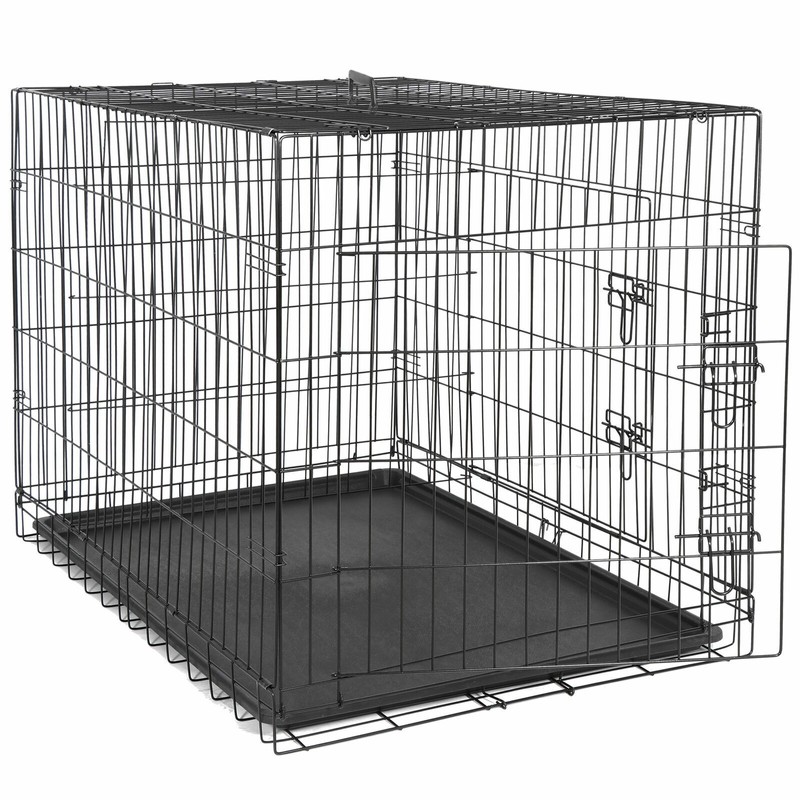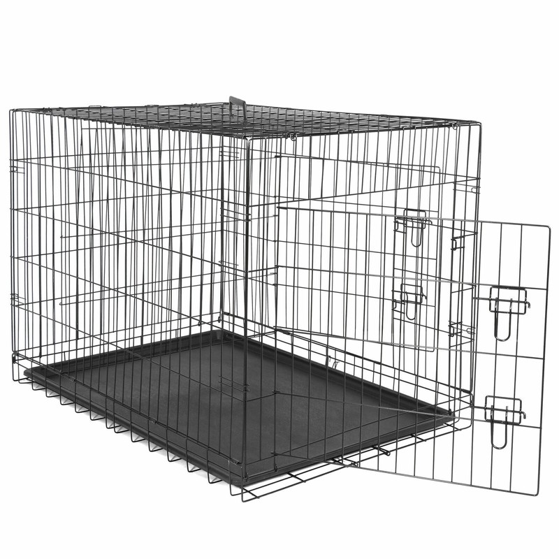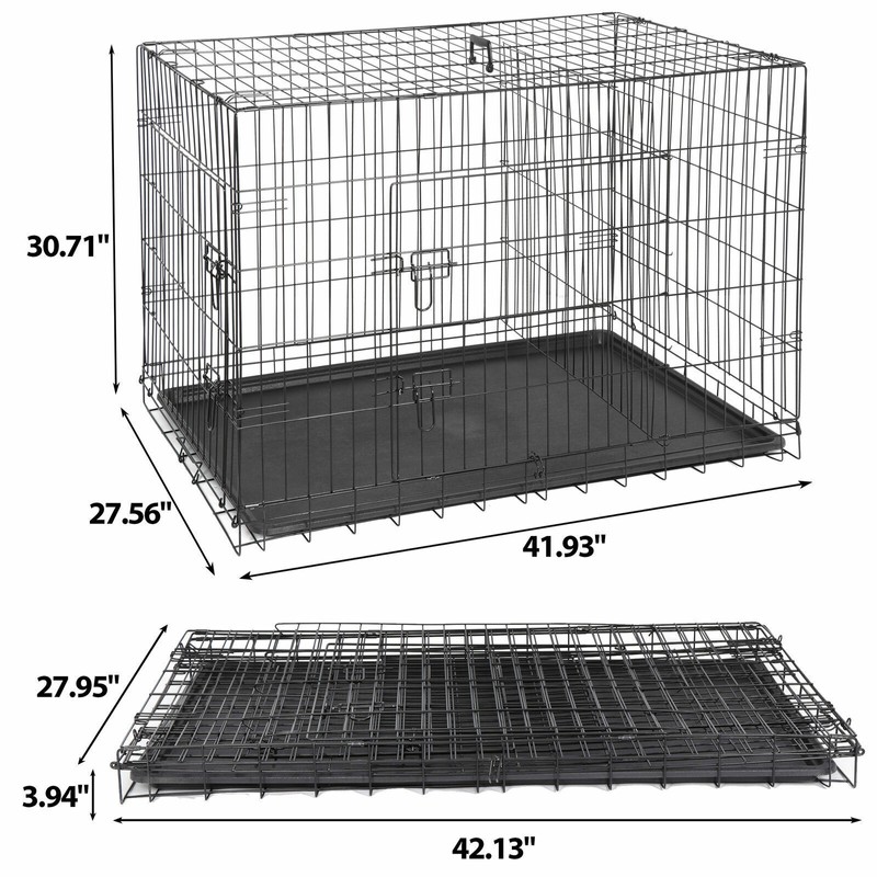 Segawe 42" Large Dog Crate House Kennel Folding Pet Cage 2 Doors With Tray Black