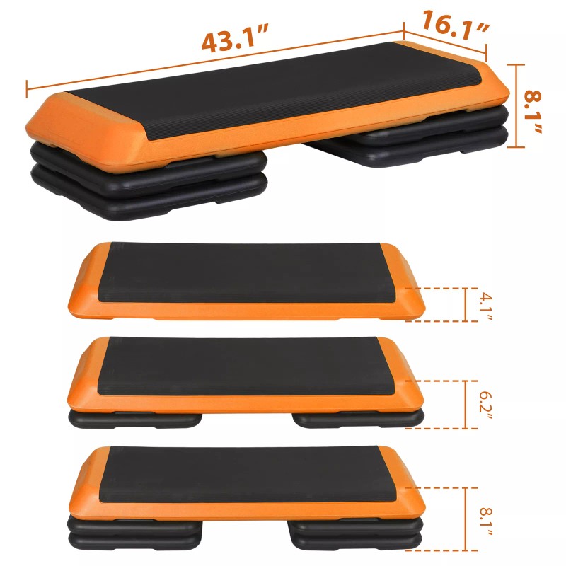- 1. Adjustable Height Levels This aerobic step platform offers 3 height levels (4", 6", 8") for customizable workouts, allowing you to adjust the intensity based on your fitness goals.