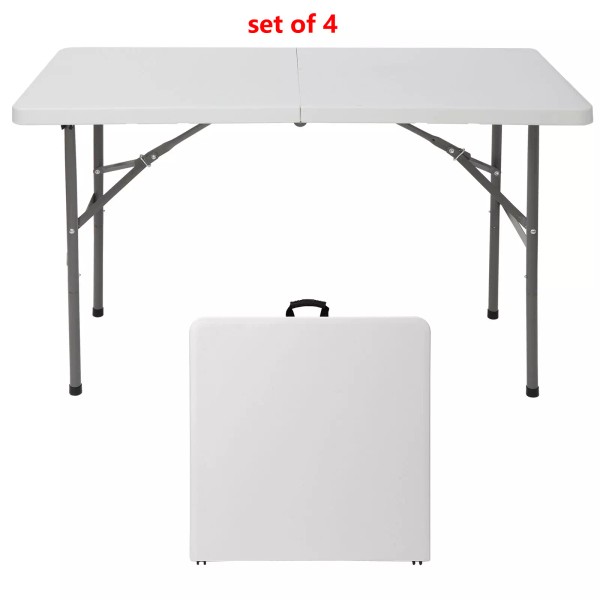Segawe 4PCS 4ft Portable Rectangular Plastic Folding Table W/Handle for Camping Dining