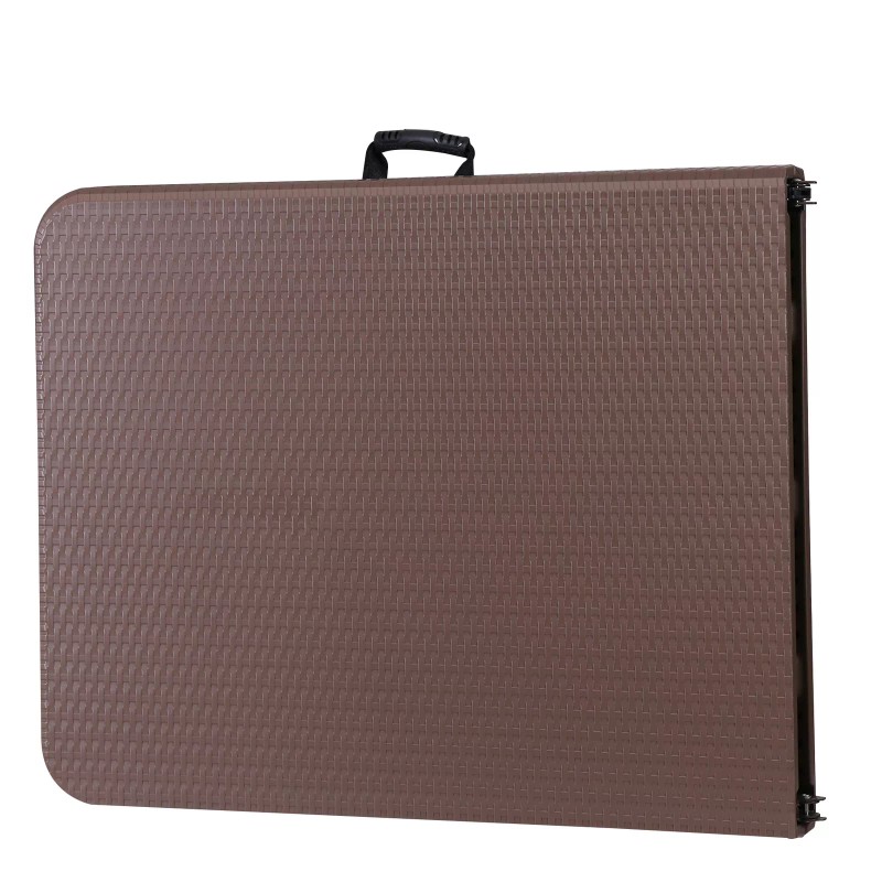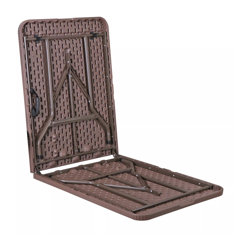 SEGAWE 6ft Metal Frame Folding Table Portable Rattan Style Camping Table, Brown