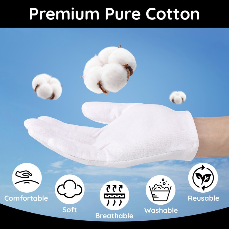 - Versatile Uses: These cotton gloves aren't just for moisturizing; they're great for handling delicate items like jewelry or photos to prevent dirt and fingerprints. As well as for use in performances, driving, and general cleaning