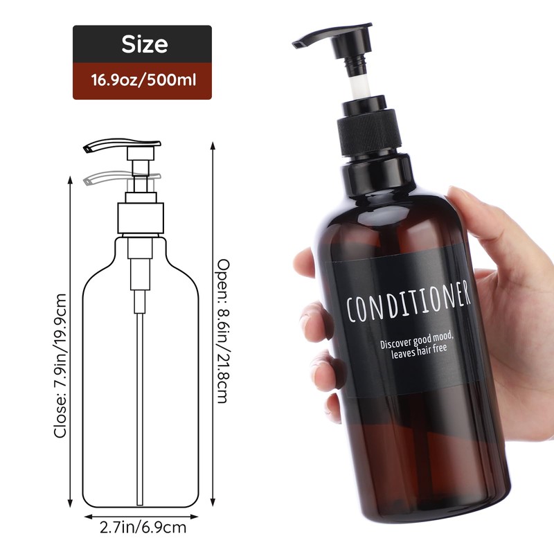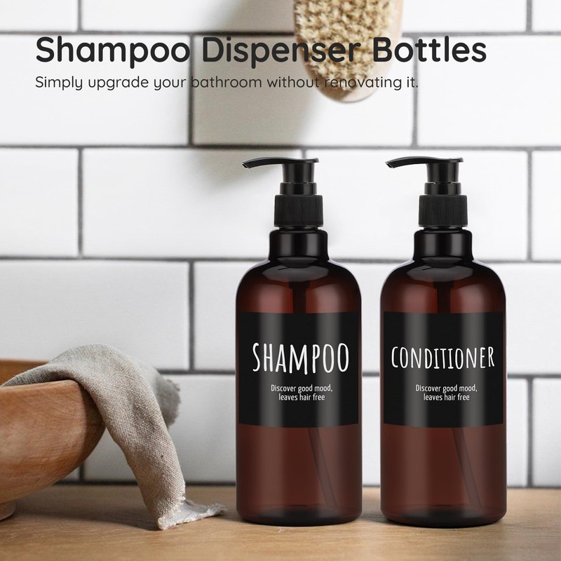 - Large capacity set: Each dispenser bottle has a reasonable capacity of 16.9 ounces to meet the daily needs of the whole family. 2 packs of pre-labeled waterproof label bottles that indicate shampoo and conditioner can help you identify them easily.