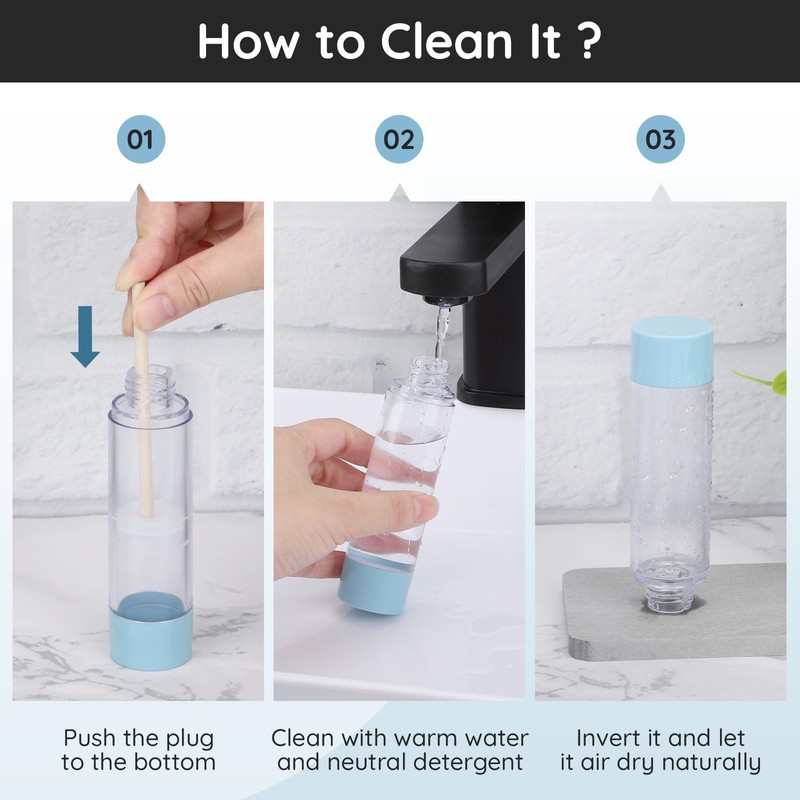 - No straw design: our airless pump dispenser features a design without a straw. With each press, the vacuum pump moves upwards at the bottom to release the cream. Once all the cream is released, simply use the wooden stick to push the vacuum pump back down to prepare it for the next refill.