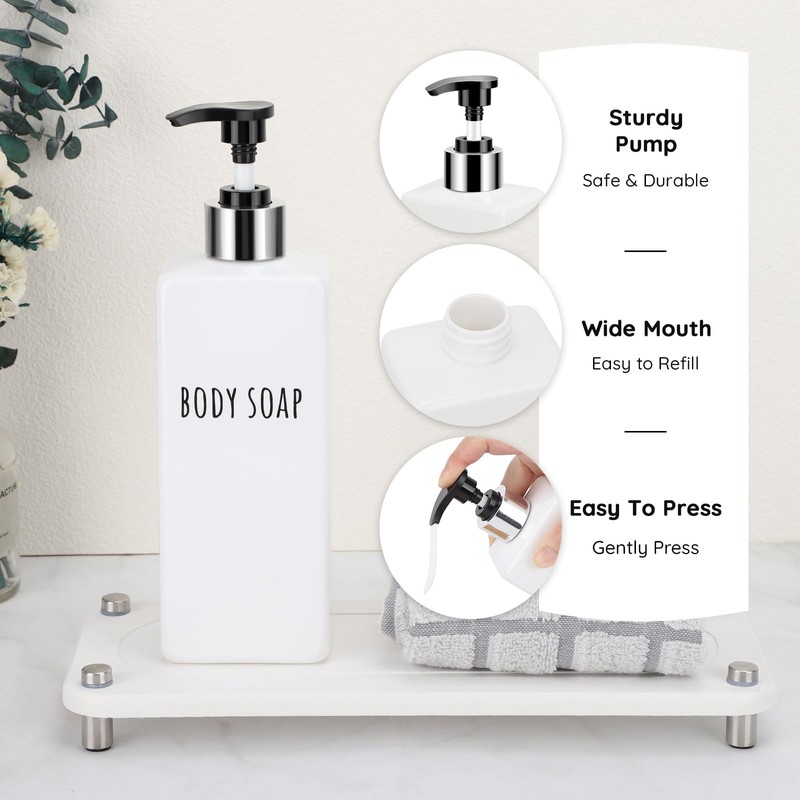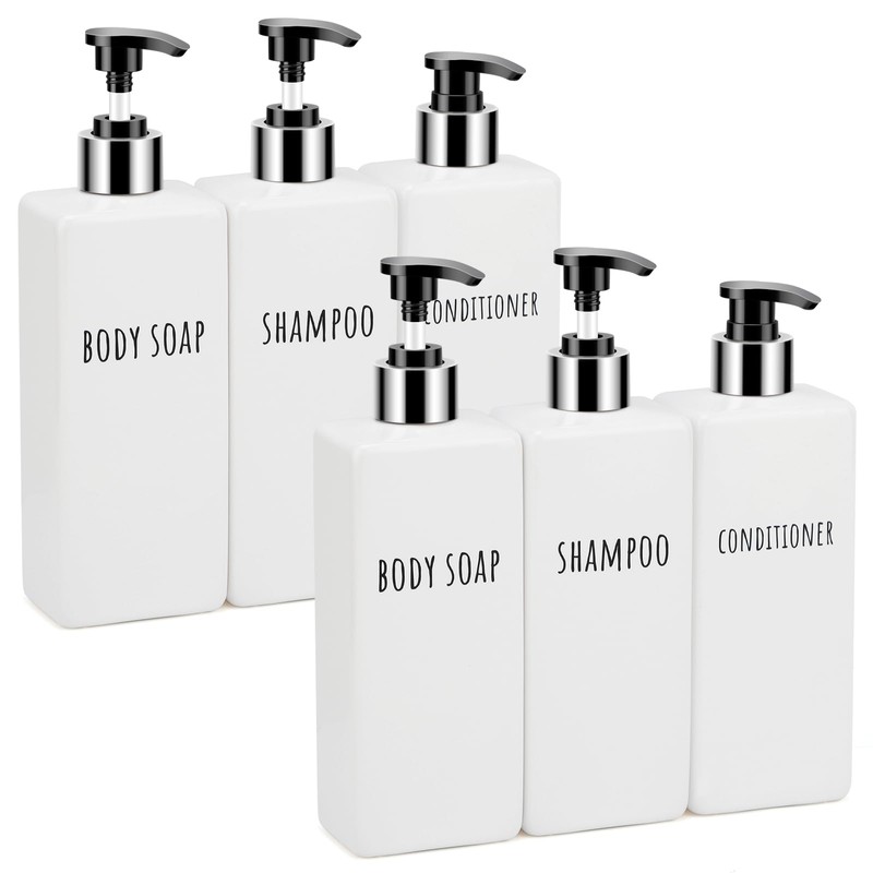 - 【Bulk 6 Packs 16.9oz for Family】Each dispenser bottle has a capacity of 16.9oz/500ml, great for the daily needs of the whole household. The bottles have water-proof pre-printed label for SHAMPOO, BODY SOAP or CONDITIONER, ensuring effortless identification and use for every family member.