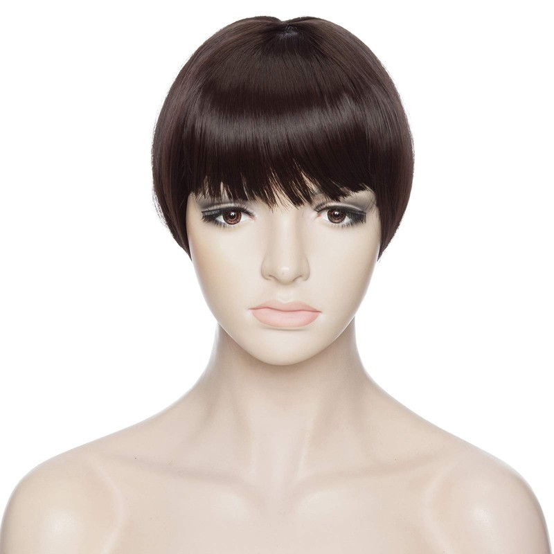 SEGO Dark Brown Clip In Fringe 3D Hair Bangs, Neat Temples Fringe Front Striaght Synthetic Hair Clip on Bangs Topper Invisible Seamless Hairpiece