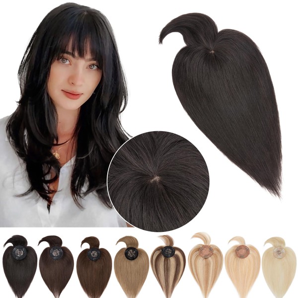 SEGO Hair Toppers for Women Real Human Hair with Bangs Mono Base 14 Inch Clip In Bangs Wiglets Topper Hair Pieces for Women with Thinning Hair -1B Natural Black