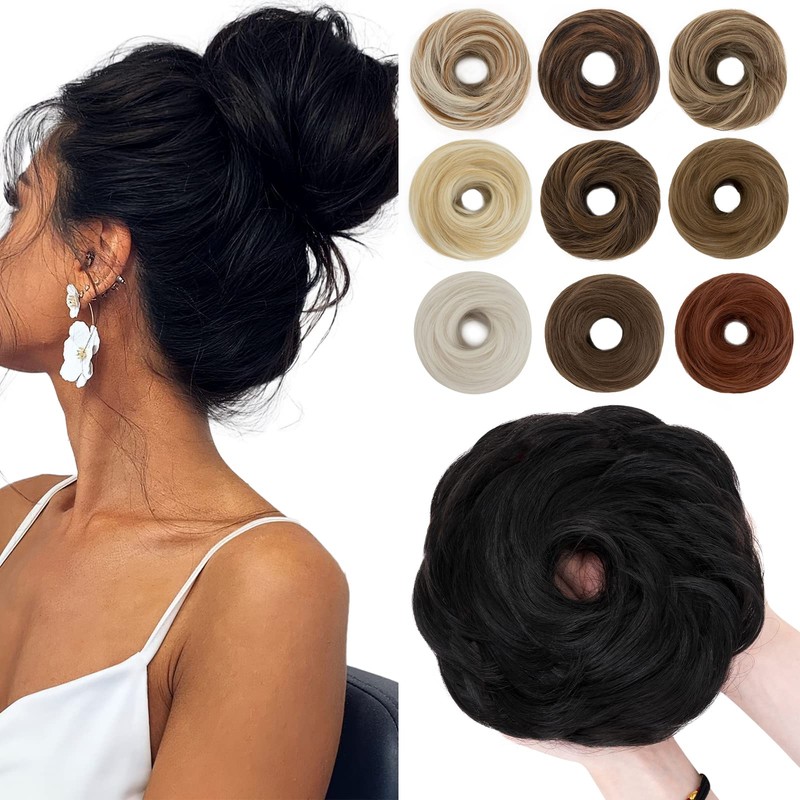 SEGO Hairpiece with Elastic Band, Large Bun Hair Pieces, Hair Scrunchie with Hair Extensions, Ponytail Braid for Women (55 g) Natural Black