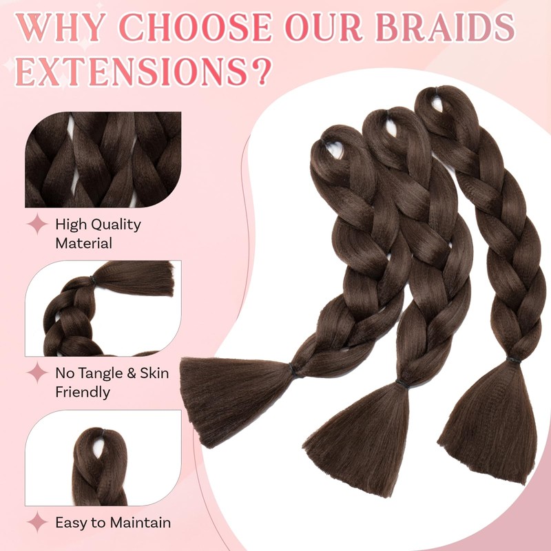 - 【Premium Quality – Natural Look & Feel】Our braids extensions hair are made from high-temperature synthetic hair extensions that mimic the look and feel of human hair. Soft, smooth, and lightweight, they are tangle-free and easy to manage. These braiding hair extensions offer a silky texture perfect for creating neat and long-lasting styles.