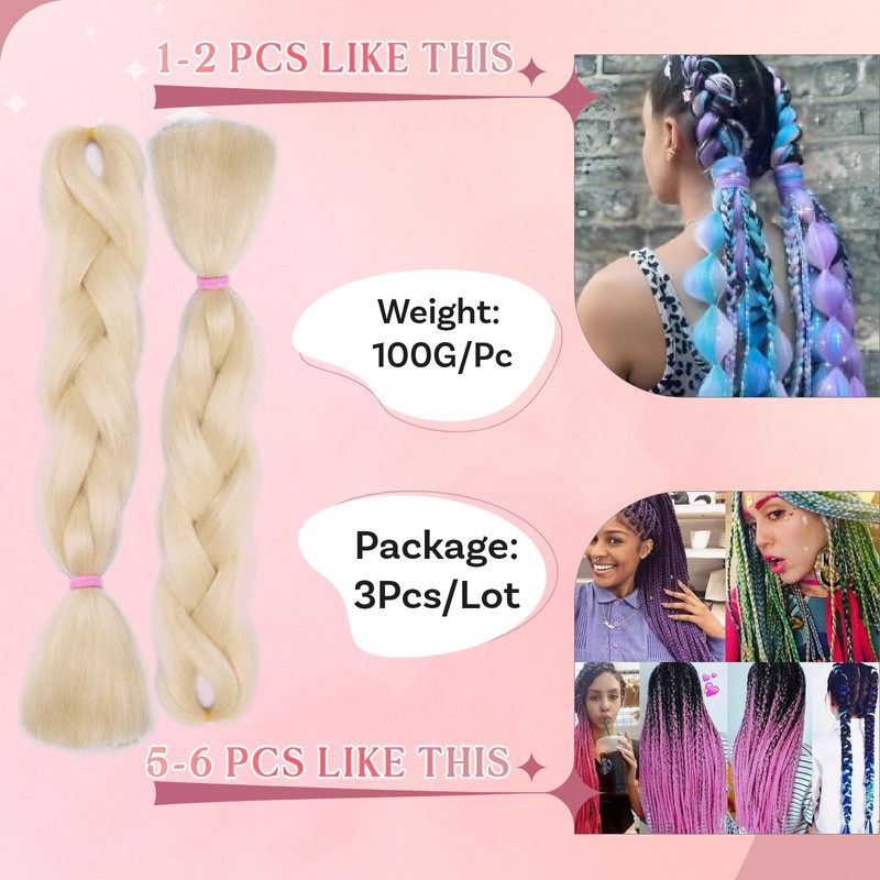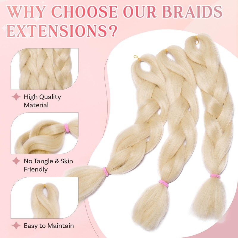 SEGO Pro Braiding Hair Extensions 24 Inch Synthetic Hair Box Jumbo Braid Hair for Crochet Twist Braids Hair Extensions for Women Braids Attachment Pack of 3 (Light Blonde)