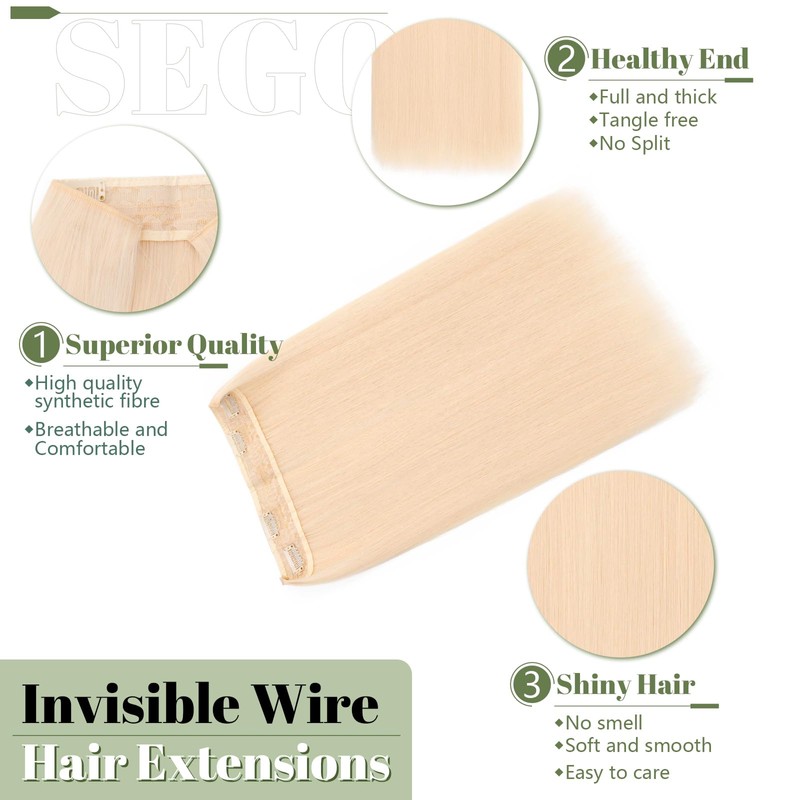 - ️2024 upgrade extensions with invisible wire: Instead of classic seams or tapes, the SEGO Secrets hair extensions are attached with an invisible wire. This creates a natural look as there are no visible fasteners.