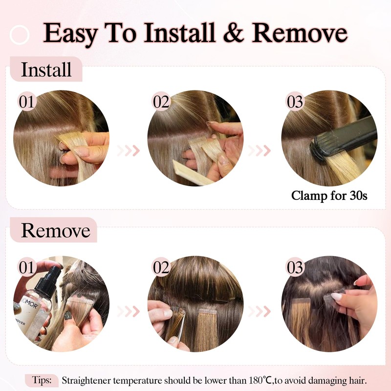 Please heat the tape part when installing to make it more durable. Tape should be used after hair is washed and dried.