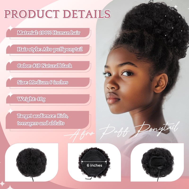- 3 Sizes for Every Occasion: Choose from small (4"/30g), medium (6"/40g), or large (8"/54g) afro kinky hair extensions, designed to adapt to diverse lifestyles and needs. With adjustable drawstrings and gentle textures, these extensions seamlessly blend with both delicate, fine hair and thicker, mature styles, making them ideal for family events, school activities, or cultural celebrations where versatility meets effortless beauty.