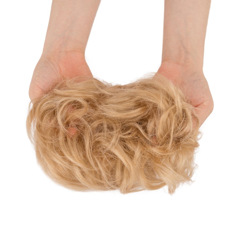 SEGOHAIR Messy Bun Hairpiece Human Hair Scrunchies Hairpieces for Women Hair Bun Wavy Curly Extensions Ponytail Updos #18 Light Blonde