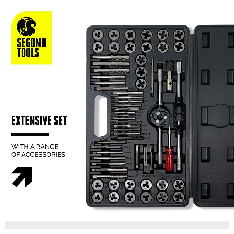 Segomo Tools 60 Piece Metric & SAE Threading Tap & Die Tool Set with Storage Case - TD60MMSAE