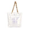 - 【Design】: This cotton-like fabric is full of winter glamour, with eye-catching design elements and a shimmering look that really shows off the winter outfit. The short plastic chain makes the bag lightweight and stylish at the same time. The large storage space makes it easy to store things and documents, while the down-like fabric is water and dirt resistant and protects your belongings well.