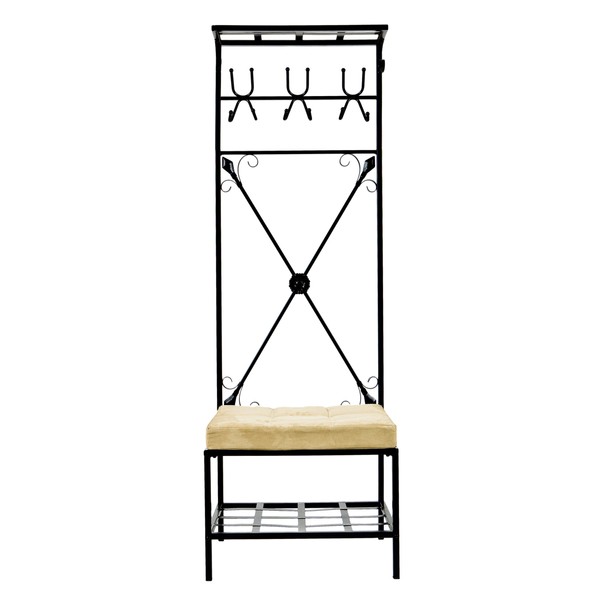- All-in-one space saving design features a bench, 12 hooks, and ventilated shelves