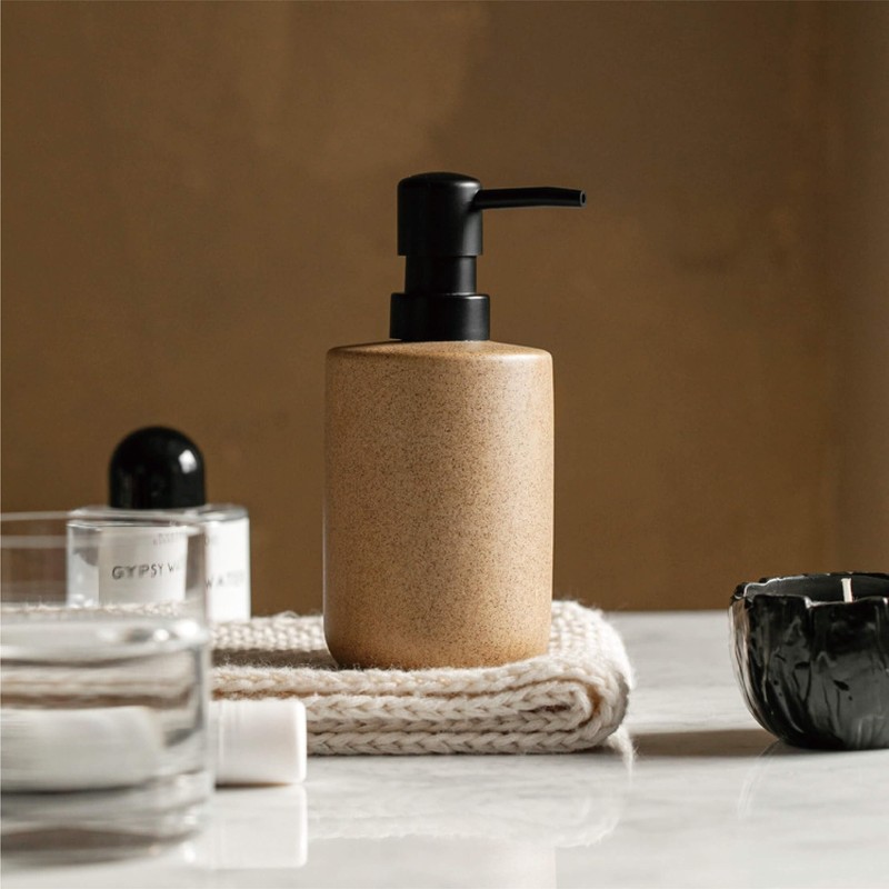 - 【Premium Stone-Like Design】Crafted from high-quality ceramic with a sophisticated beige finish that mimics natural stone texture. Each dispenser features a sleek black pump head, creating a perfect blend of modern aesthetics and natural beauty.