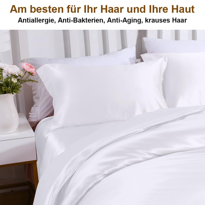 SeidenCushion Cover 40 x 80 cm, Ravmix Silk Pillowcases for Hair and Skin, with Hidden Zip, Both Sides Silk, Mulberry Silk Pillowcase 40 x 80 cm, 1 Piece, White