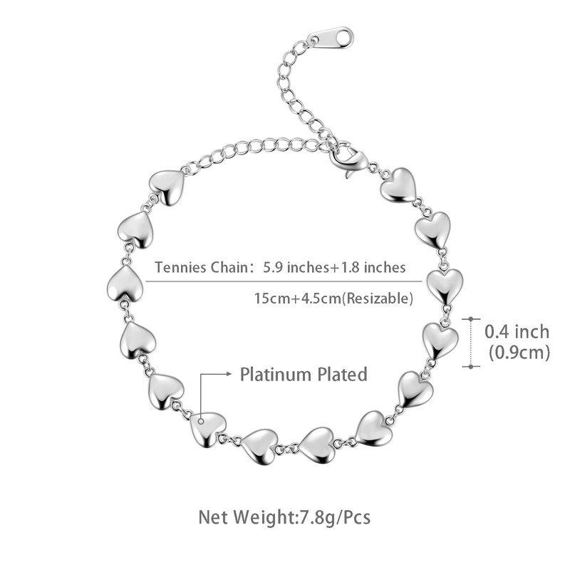 - ❤Heart-Link Bracelet Material❤:Comes in silver plated on the surface,tarnish-resistant then can't be faded in a long time.Nickel free,lead free,cadmium free,safe for sensitive skin.