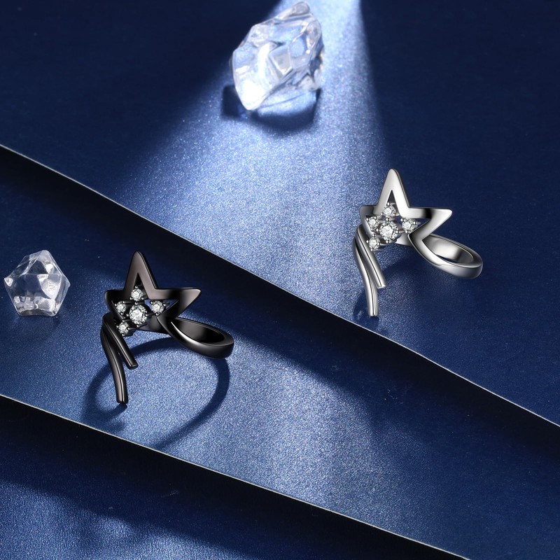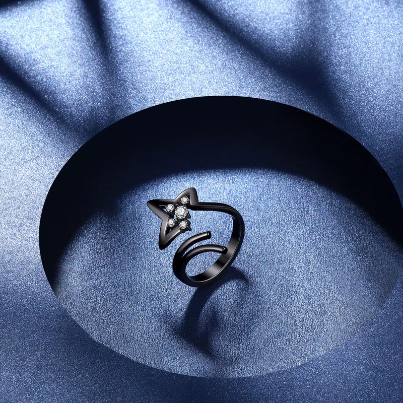 SEIHOP Star Adjustable Ring Sparkling Hollow Star Index Joint Knuckle Ring Black Gun Plated Star Wrap Open Ring Jewelry for Women KR0079K