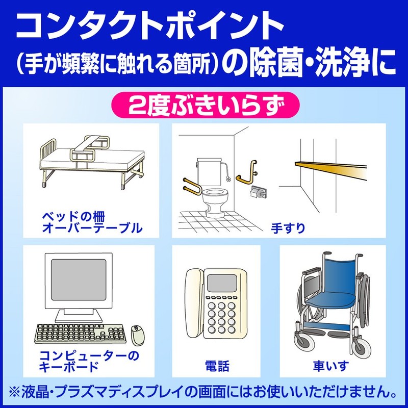 - Use on medical patient's hand contact surfaces (door knobs, handrails, bed, fence, devices etc.)