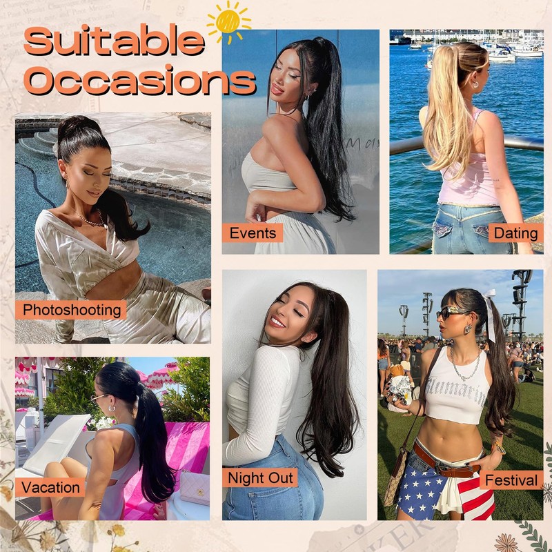 • Add Hair Volume and Length - Instantly increasing hair volume and length, glamorous new look without damaging your own hair. Say goodbye to expensive and time-consuming salon appointments, You can bring the clip in ponytail hair extensions in or out anytime you want