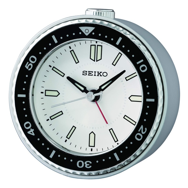 Seiko Alarm Clock, Plastic, Silver/Black, 95 mm