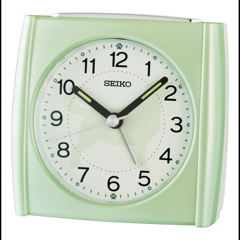 Seiko QHE209MLH Square Non Ticking Bedroom Alarm Clock, Puppy Green, 3.5 x 3.4 Inches