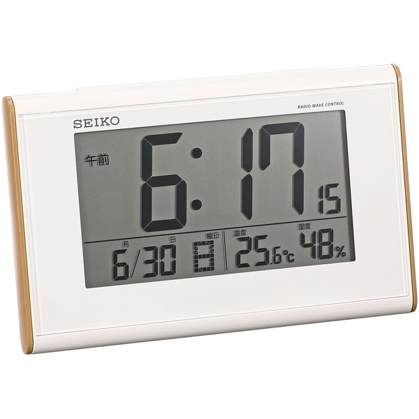 Seiko clock alarm clock Wireless Digital Calendar Temperature Humidity Display Light Brown Wood Grain Pattern sq771b Seiko