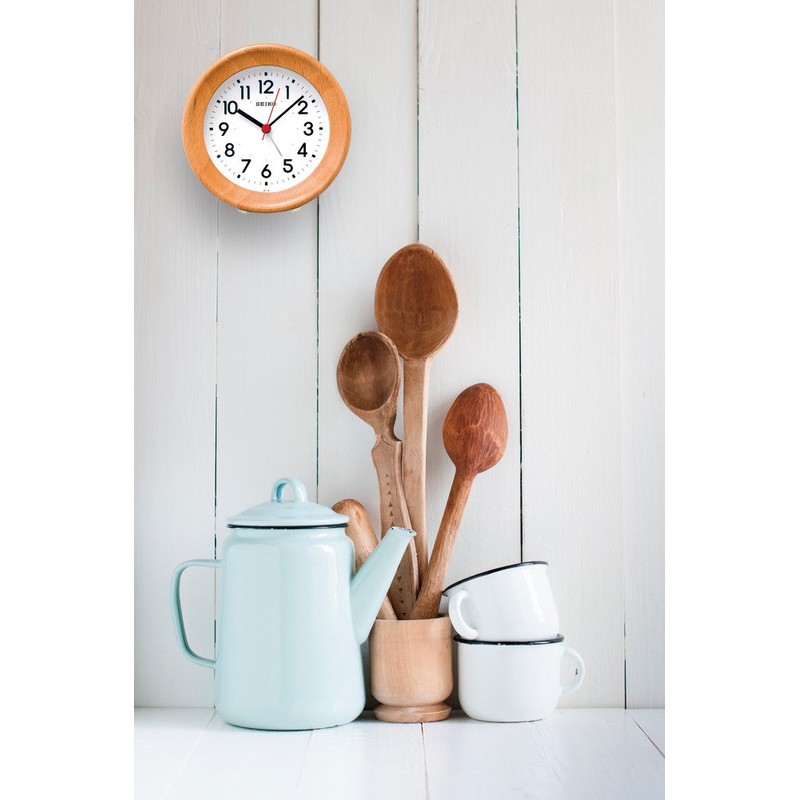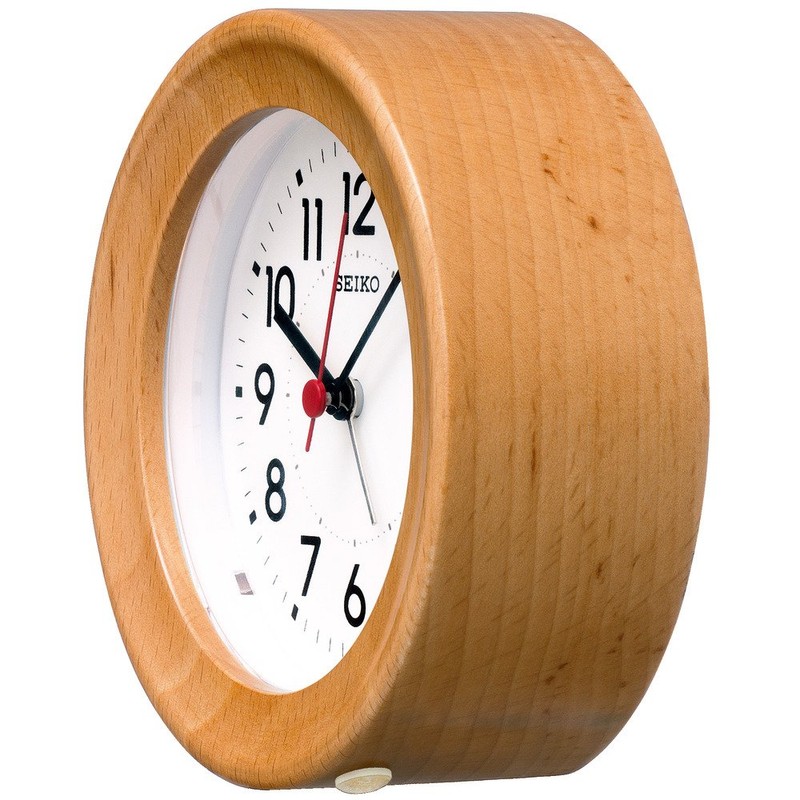 Seiko Clock, Table Clock, Alarm Clock, Analog Wood Frame, Natural Painted Woo...