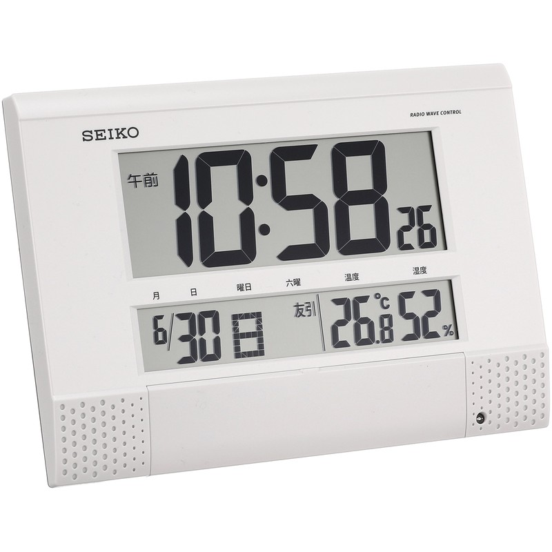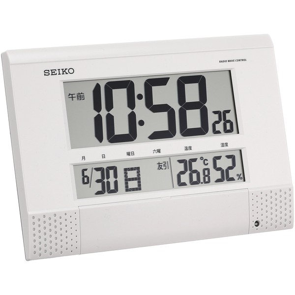 Seiko clock wall clock 置ki時計 Women Atomic Digital Programmable Function Calendar Six 曜 Temperature Humidity Display Compact White Pearl sq435 W Seiko