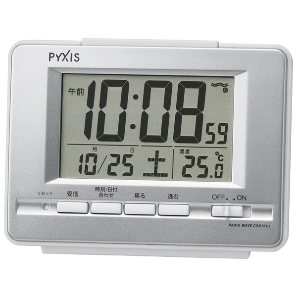 Seiko Digital RC Alarm Clock with Calendar & Temperature Display, PYXIS Silver/Metallic (NR535W)