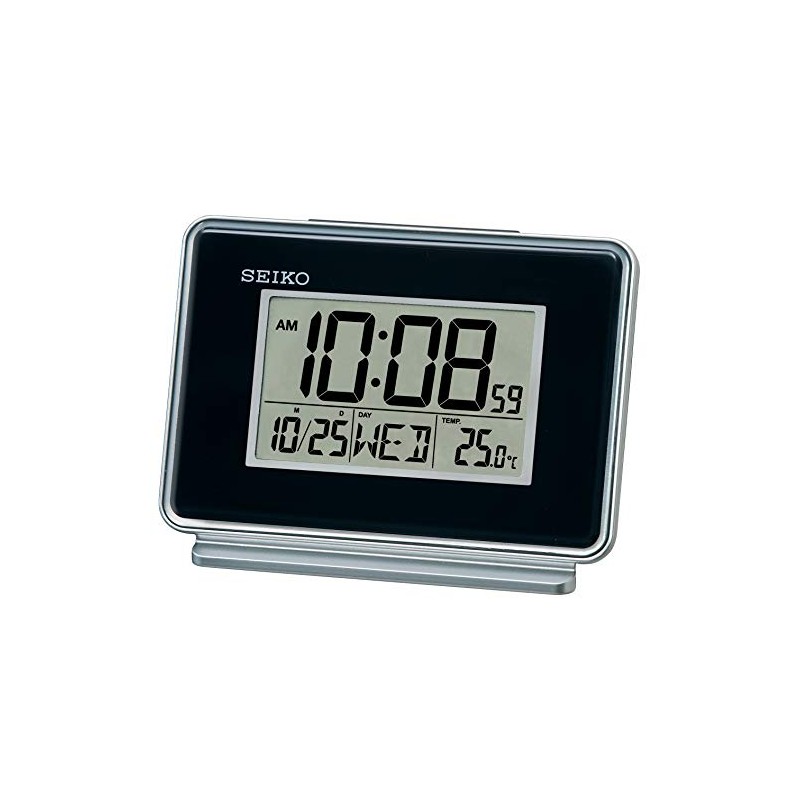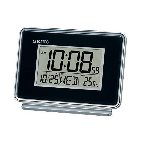 Seiko LCD Dual Alarm Calendar Clock-Black, 6x12x8 cm