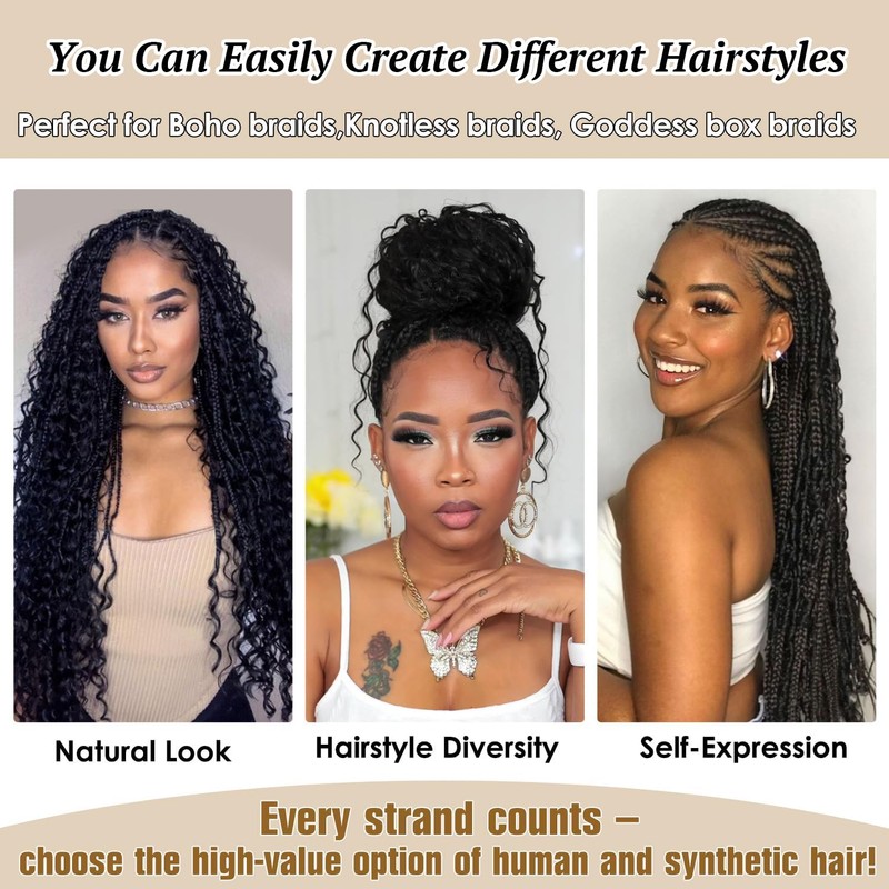 - Versatile specifications and colors:Deep Wave Crochet Hair for Goddess Locs Braidis with Multiple Colors to Choose from:1B,27#,30#,613#,BUG#,Grey#. Braiding Hair Length:18-30Inch are Available,Also Mix Color,You Can Use the Curly Braiding Hair DIY a lot of Styling.Such As Boho Box Braids,Goddess Box Braids,Crochet Braids,Box Braids,Bohemian Braids,Goddess Braids,Senegalese Twist.Whether you want a bold statement or a subtle touch, our deep wave crochet hair has got you covered.