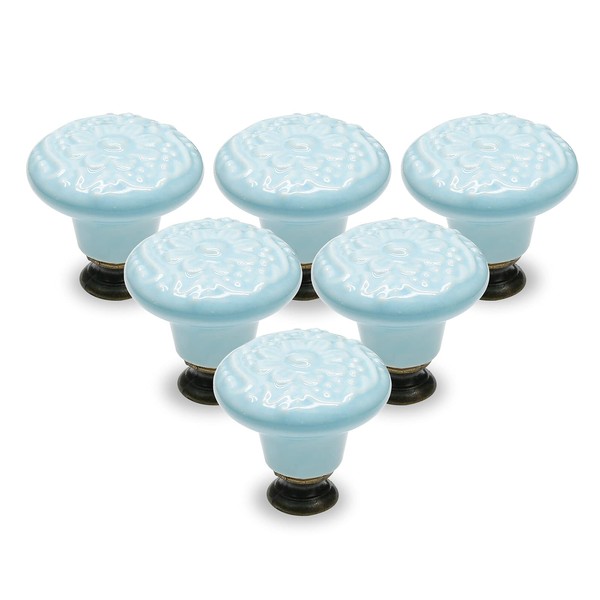 Seimneire 12pcs Sky Blue Cabinet Knobs, Retro Ceramic Dresser Knobs, 34mm / 1.3" Drawer Knobs Door Knobs Drawer Pulls Dresser Handles with Mounting Screws