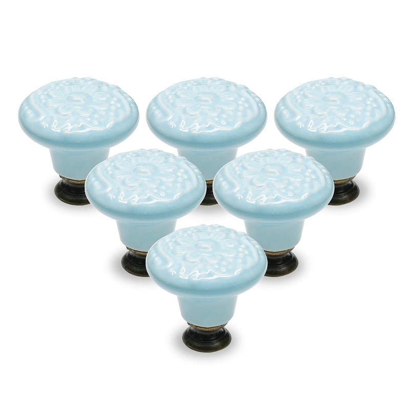 - *Elegant Appearance --- These ceramic drawer knobs have a unique flower surface relief, with a bronze base, which is elegant and beautiful. Ceramic flower knobs are both artistic and practical and are very suitable to replace old or damaged round drawer pulls on your furniture.