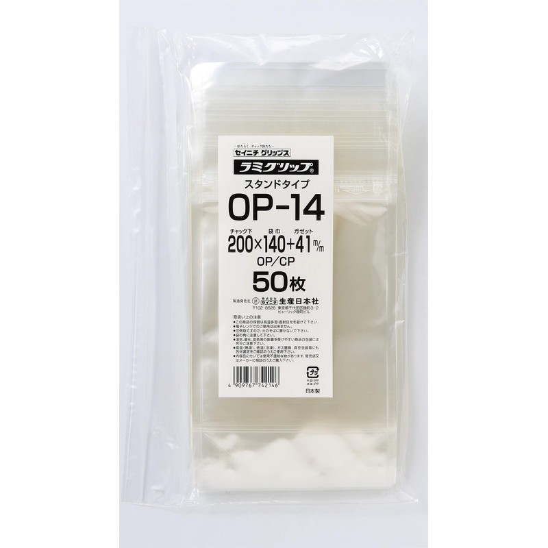 Seinichi OP-14 Laminated Stand Pack with Zipper, Lami Grip, Stand Pack, OP Type, 50 Sheets